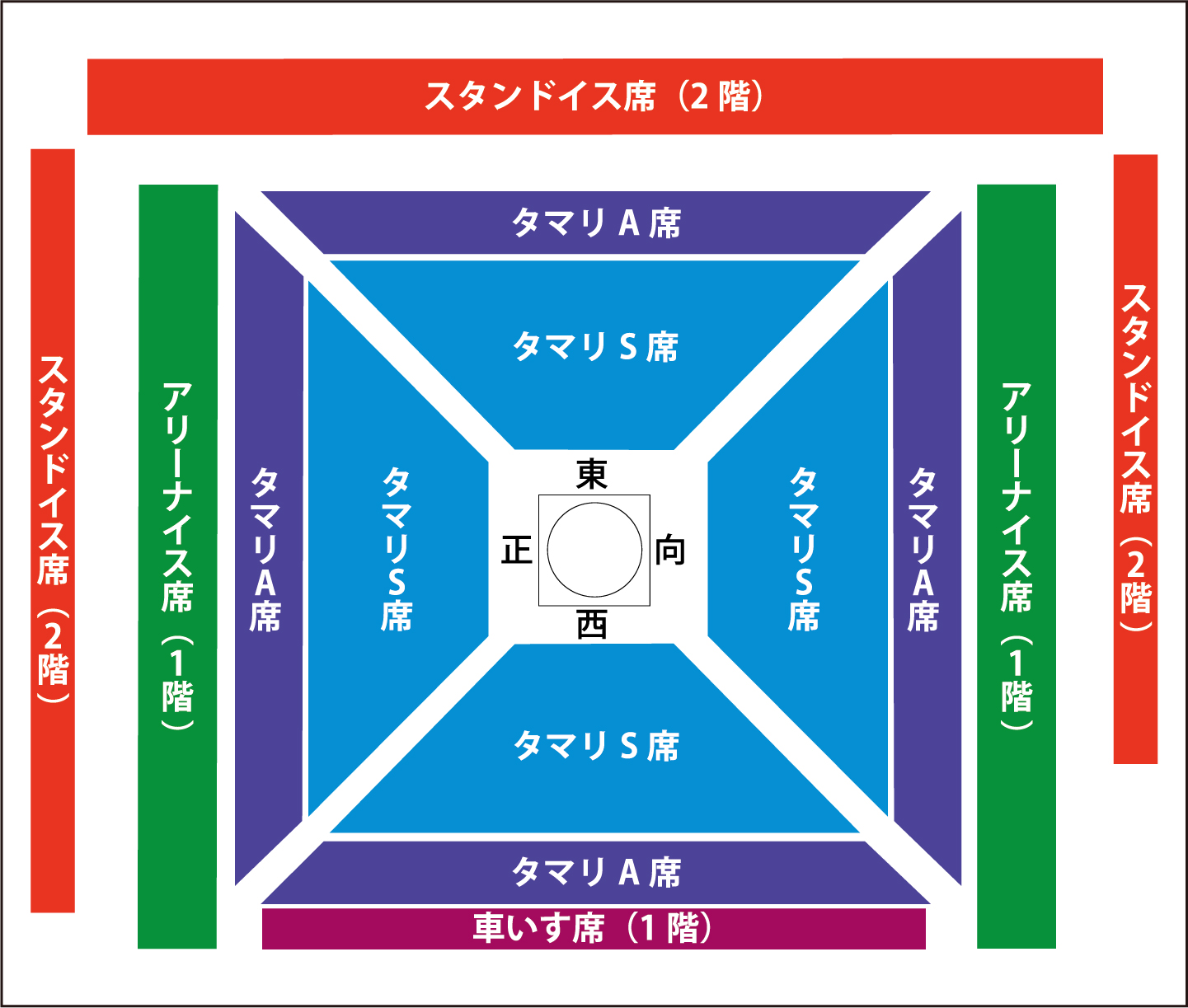 ・2階席のお客様はアリーナへ立ち入りができませんのでご了承ください。力士とのふれあいをご希望の方は1階席の購入をお勧めします。